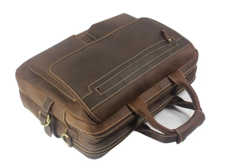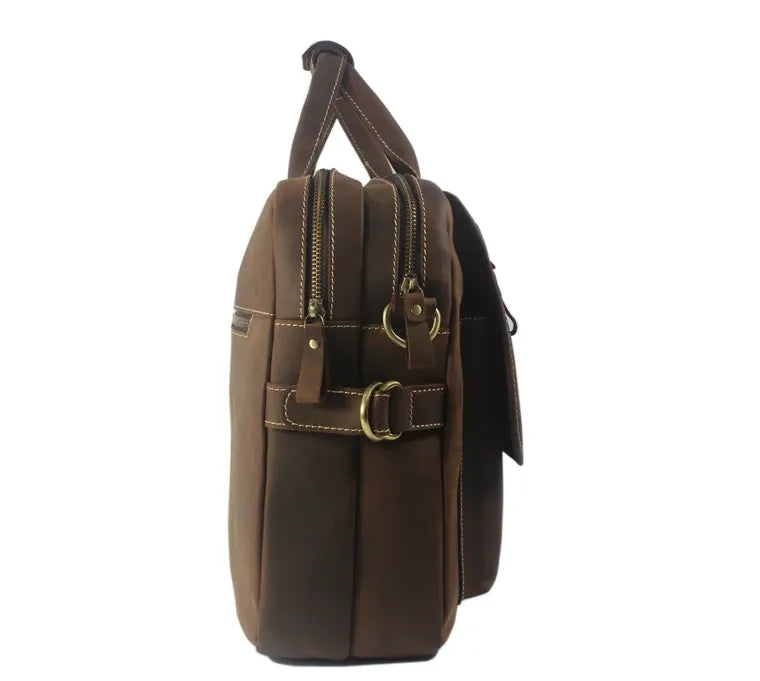 Sa matière en cuir marron offre un cachet unique à votre porte-document. Vous aurez deux façons de porter votre porte document : avec bandoulière ou par la poignée.
